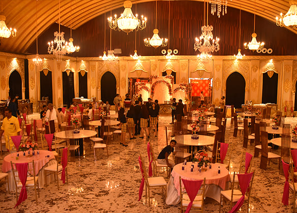 BallRoom at The Panache Banquets realms glitz and glamour at the finest in Patna, inspired by traditional ballrooms, it is beautifully decorated with gleaming chandeliers, golden interiors, and radiant floors & walls.